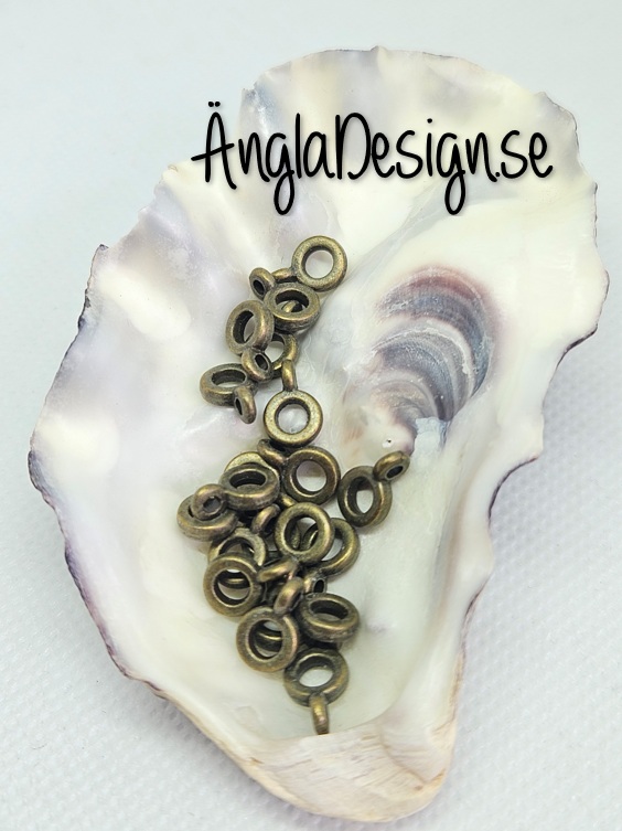 Nickel, bly och cadmiumfritt. Mått 6,5mm 2mm tjock hål ca 3mm. Lilla ringen 4mm 1,5mm tjock, hål ca 1,7mm